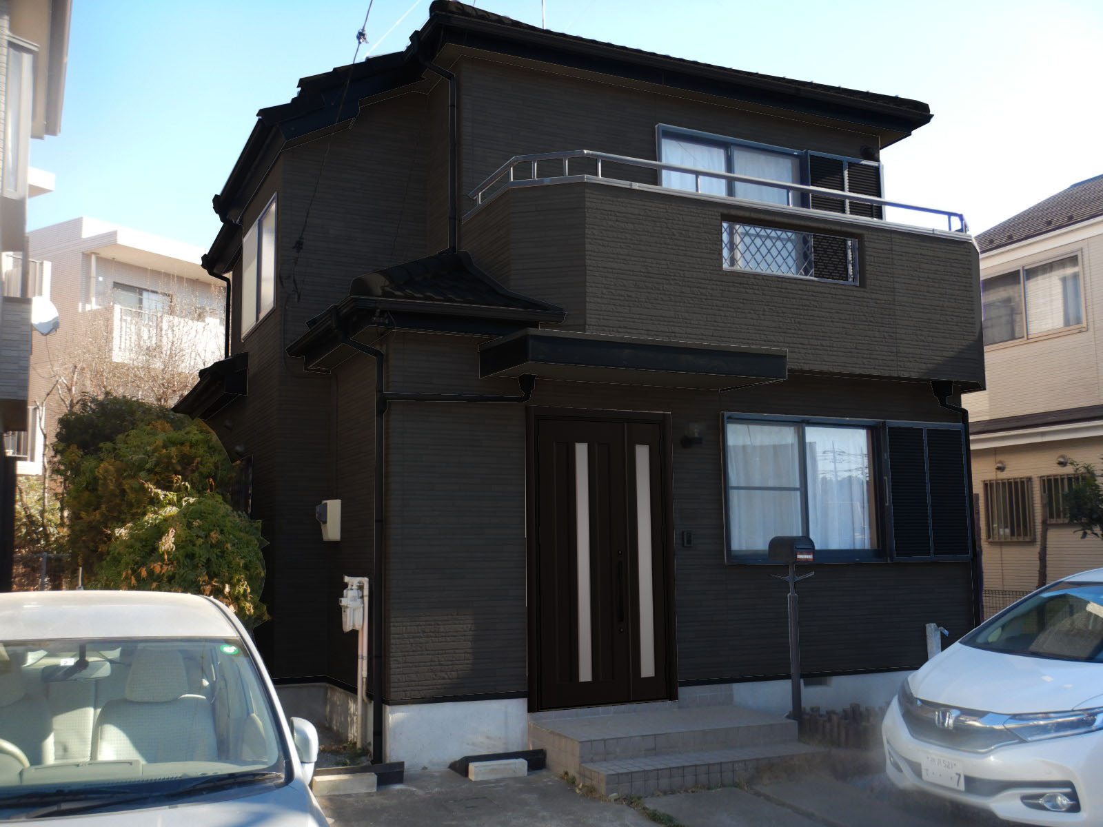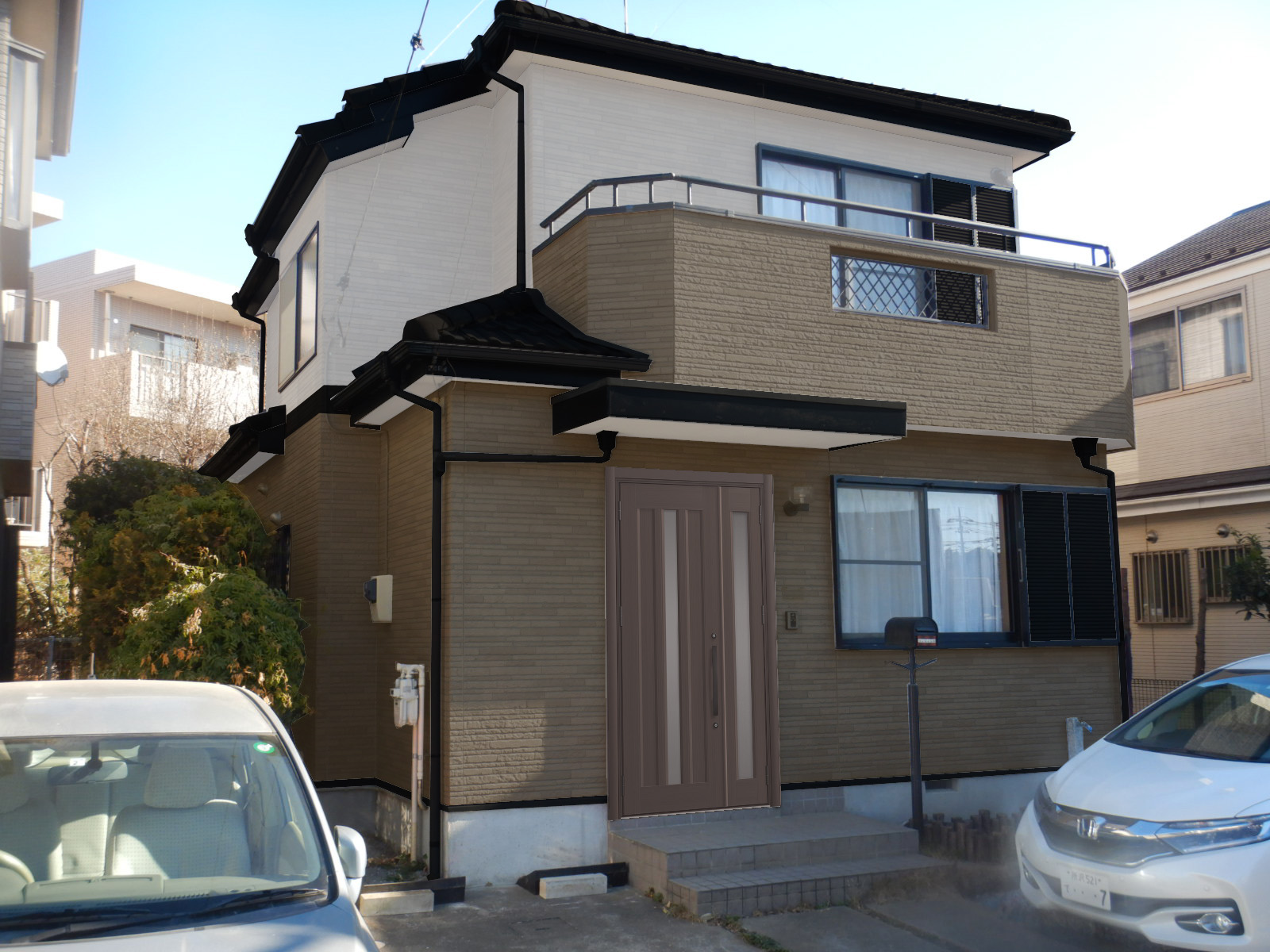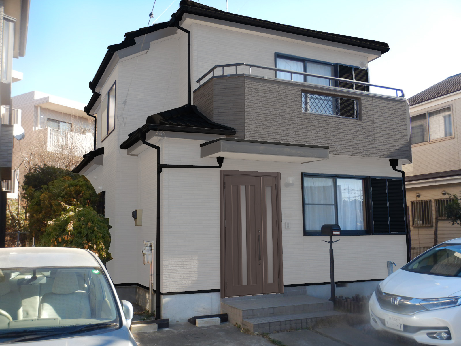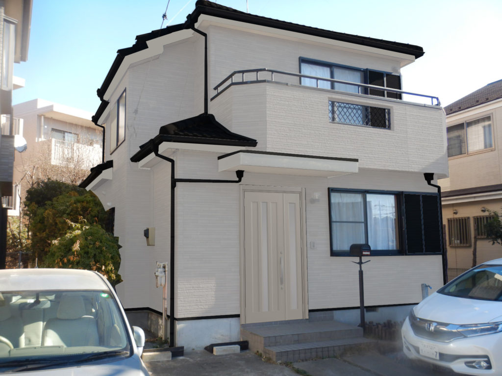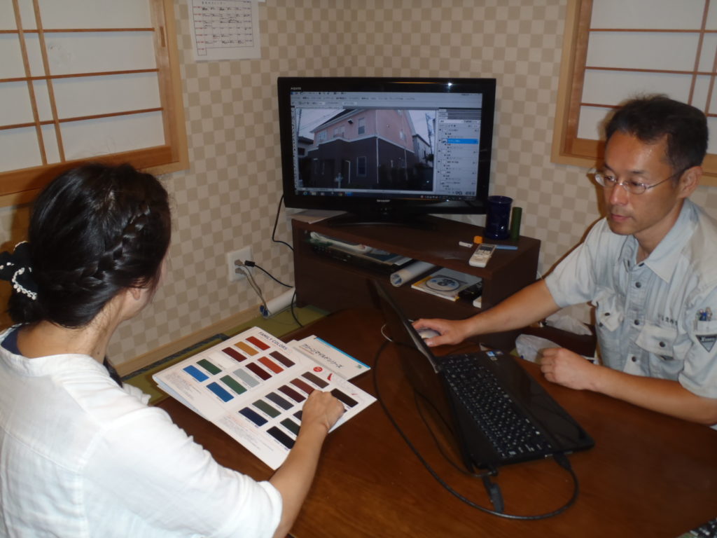 実際の工事の前にカラーシミュレーションでイメージ確認できます。外壁色はもちろん、雨樋等の細部も色を変更できます。