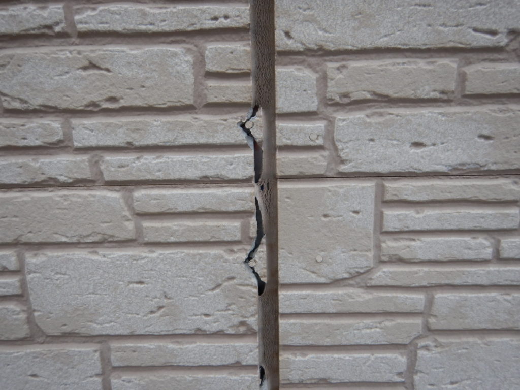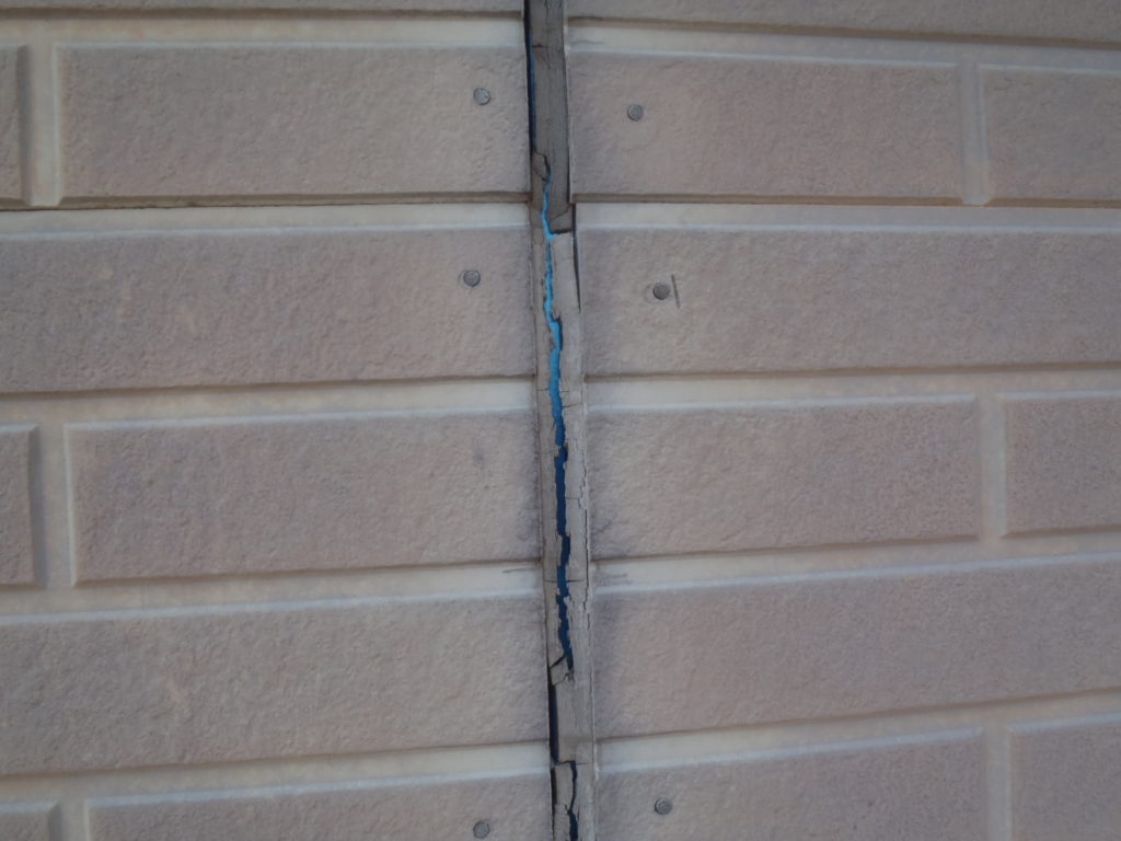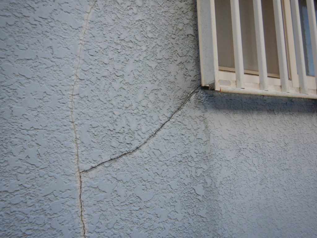 サッシの角や、建物の動きやすい箇所、2×4住宅のパネル継ぎ目などに生じます。内部に防水紙が入っていても、ヒビ割れから雨水が入るのは建物を傷めてしまいます。